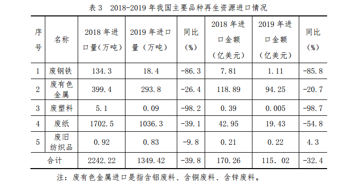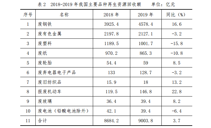 2019 年,在綠色發展理念引領下,國家對再生資源重視程度明顯提高,再生資源領域政策支持和制度保障力度加大,多項重大利好政策相繼出臺,持續為行業注入增長動力,推動再生資源行業向集聚化、集約化方向發展。