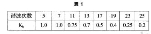 國家標準 GB/T14549—93中推薦 ,兩個諧波源的同次諧波 電流在 同一地點 的同一相上疊加 ,當相 位不 確定 時可按下式 進行計算 :Ih=、/Ih1+I}l22+Kh1IhlI}l2 式 中 Kh系數按表 2選取 。I 和 I分別為諧波源 1和 2的 第 h次諧波 電流 ,單位為 A。