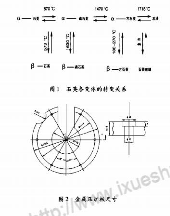 目前國(guó)內(nèi)中頻爐用于熔煉鑄鐵的普通爐襯材料使用的是SiO:石英砂。自然界的石英是低溫型的。開始加熱時(shí),石英砂隨溫度升高而均勻膨脹。在573~C時(shí)發(fā)生同質(zhì)異晶轉(zhuǎn)變,低溫石英轉(zhuǎn)變成高溫目前國(guó)內(nèi)中頻電爐用于熔煉鑄鐵的普通爐襯材料使用的是SiO:石英砂。石英后因晶體轉(zhuǎn)變而突然膨脹(這個(gè)轉(zhuǎn)變是可逆的)。高溫石英砂在870~C以上和有溶劑存在的條件下會(huì)轉(zhuǎn)變成磷石英,但轉(zhuǎn)變速度很慢。升高溫度可加快轉(zhuǎn)變,但即使在1250—1350℃高溫下亦需1小時(shí)左右才能完成。此時(shí)體積增大1.6倍,磷石英在1470℃以上變成方石英。方石英在1713℃以上融化,冷卻后變成石英玻璃,如圖1所示。