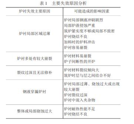 中頻爐爐襯裂紋傾向大和不耐鋼液沖刷是中頻爐失效的主要原因,選擇比較容易燒結、裂紋和崩裂傾向 小、耐鋼液沖刷等特點的中頻爐爐襯材料,采用適當的爐襯修筑和維護工藝,能使中頻爐爐齡從 45 爐次提高到 70 爐 次以上。