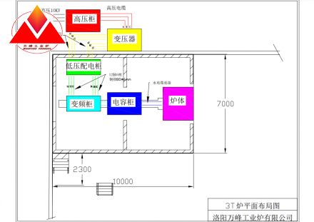 今天萬峰小編給大家說一說中頻爐的擺放方式?如何和低押配電柜,變頻電源柜,電容架,中頻爐爐體,水冷電纜,等設備如何分布,下圖是某一客服的布局示意圖,我司會根據客戶現場情況,現場廠房面積,高度等相關情況合理布局,分布,并會擬定更為準確的施工圖。如有需要可以聯系我司。